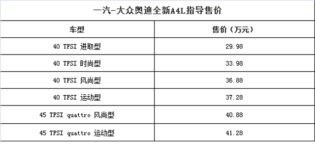 “饭好不怕晚,茶吃后来酽”,今年9月国产全新奥迪A4L(B9)正式上市,相比前两者,A4L凭借更均衡的性能表现,更得教授欢心。让人可喜的是,新款奥迪A4L入门版售价更是下探到29.98万元,诱人的起售价、强大的产品力,可谓诚意满满。今天教授来授予你A4L的选配攻略。