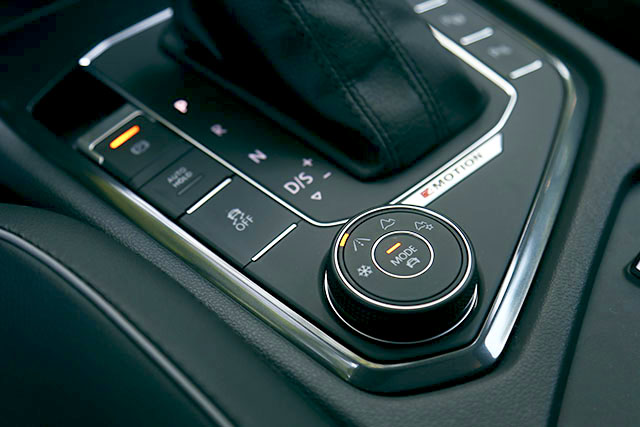 我们决定把新途观(进口)拉到大梅沙附近的山上好拍些照片,顺便更好地在山路间检验它身上的欧洲风味。我试驾的330 TSI顶配车型配备了舒适、经济、标准、运动、个性五种驾驶模式,同时还拥有雪地、公路、越野、个性越野的路况选择功能。通过换挡杆旁的旋钮可以选择驾驶员所适合的驾驶模式。
