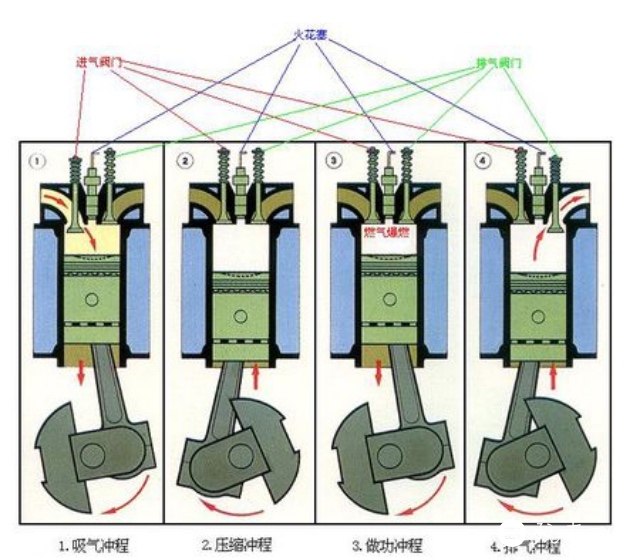 我们都知道四冲程发动机的做工过程分别是吸气,压缩,做功,排气。