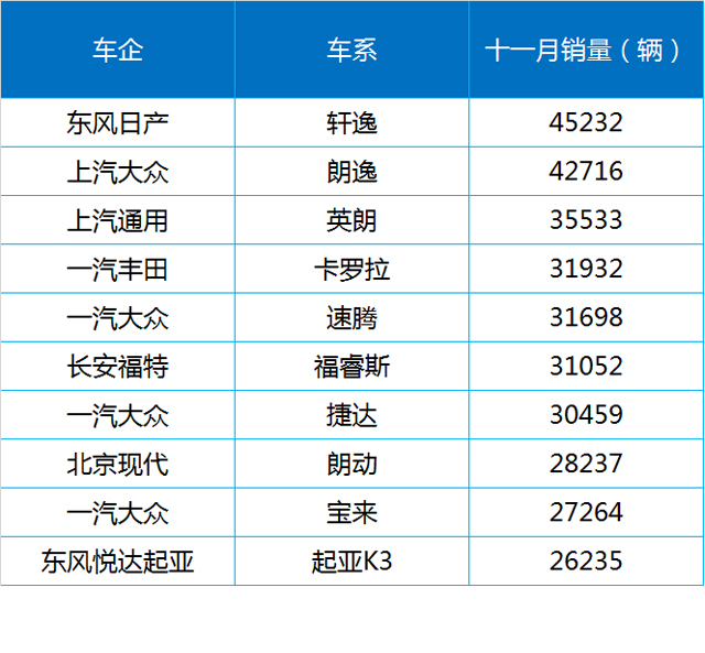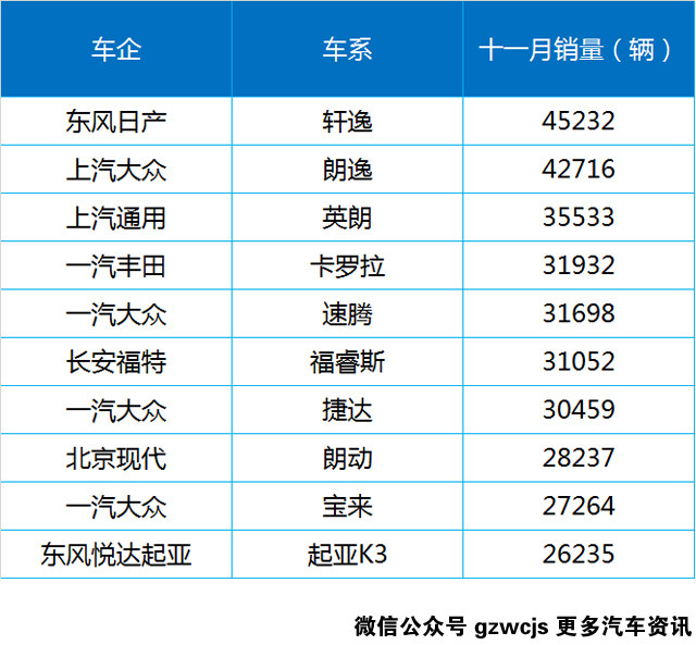 废话不多说,送上11月轿车销量前十的点评,这些车似乎都有些话想说。