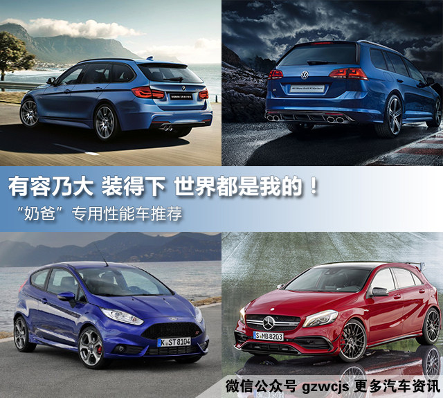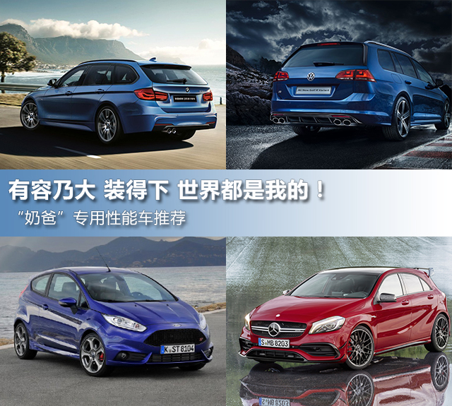 经过筛选我们选出了高尔夫R旅行版、嘉年华ST、宝马320i旅行版和奔驰A45AMG四款奶爸专用车。(先来说说筛选的方向,主要是从动力以及空间布局的实用性来筛选的)