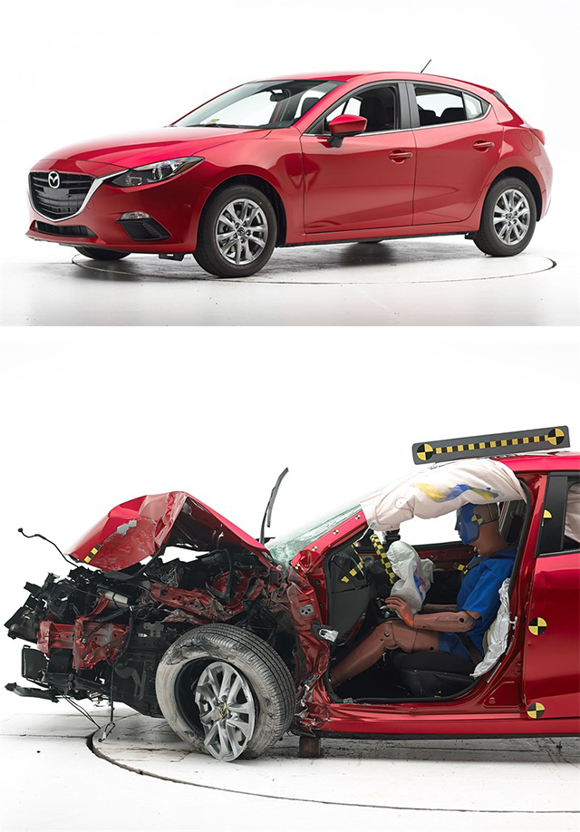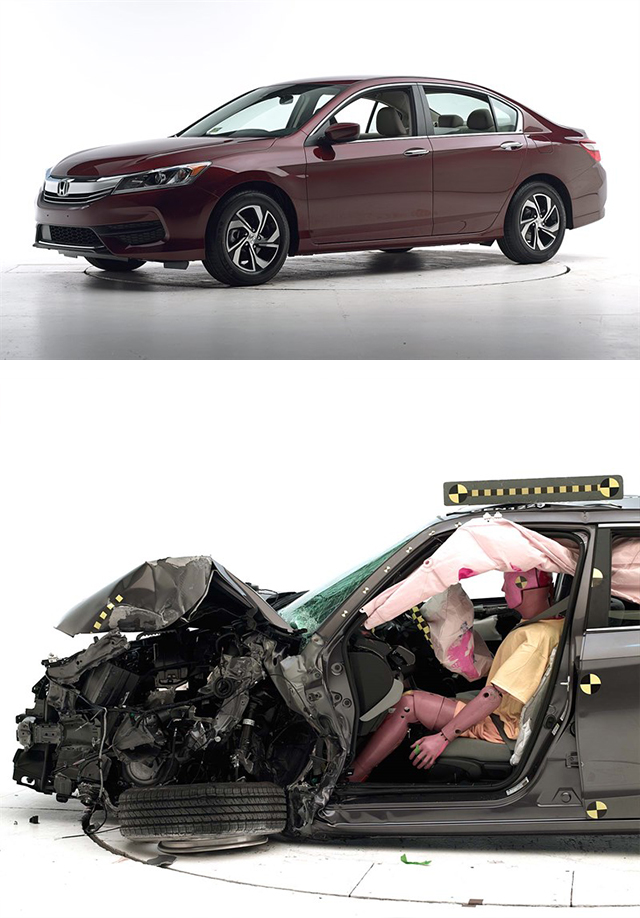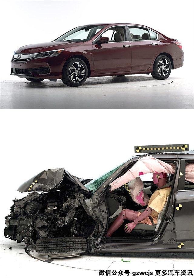 本田雅阁是大家最熟悉不过的一款家用B级车了,它给教授留下的印象就是既舒适,又扎实,开起来也不至于太过没趣的一辆B级车。安全方面,Honda SENSING对于预防碰撞确实起到一定的作用,同时吸能车身又把碰撞的伤害降到最低,所以你会看到雅阁的车头碰撞后的变形很严重,但是里面的假人却没有受到严重的挤压。