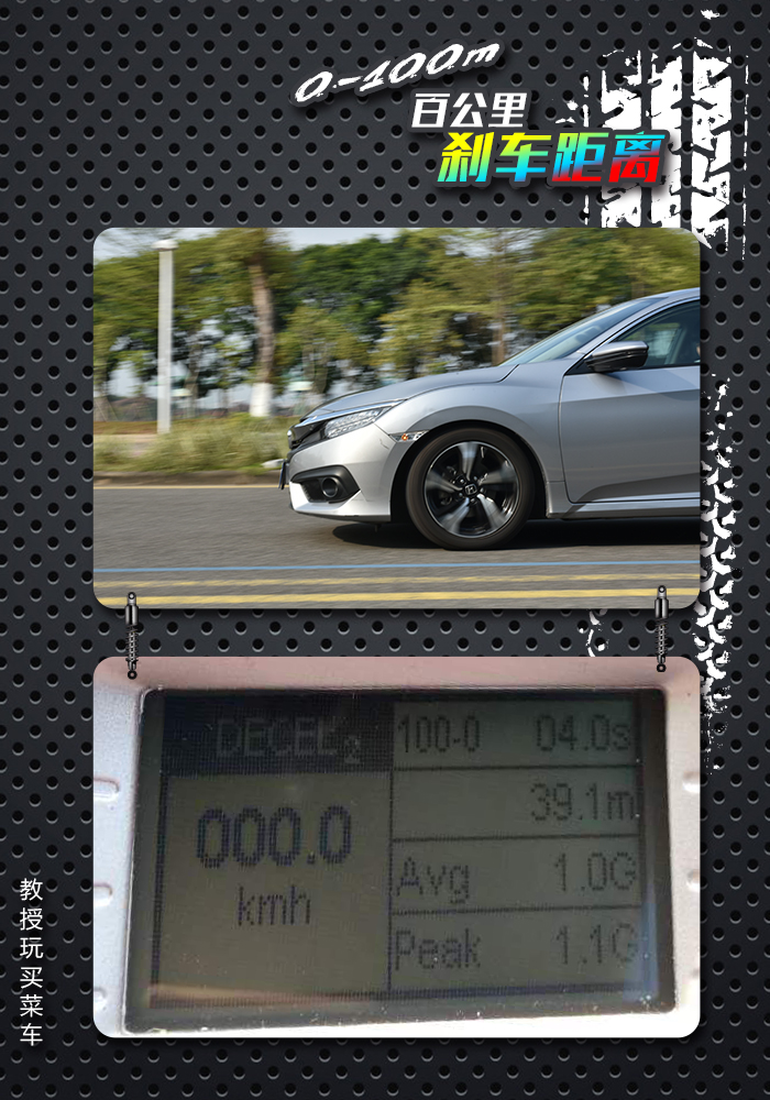 既然这个车能够这么快,那么刹车系统的要求也一定不能低,不然在高速行驶时刹不住就不知道怎么办了,这款十代思域在教授测速刹车距离的时候,成绩为39.1米,这个成绩与同级别车的成绩基本持平。