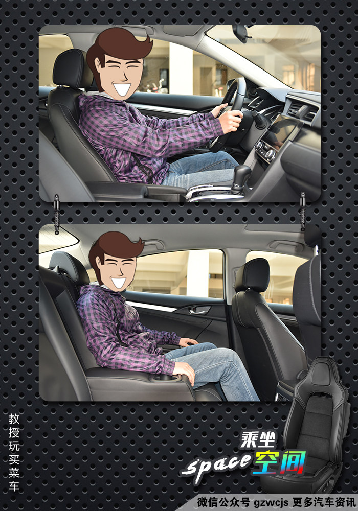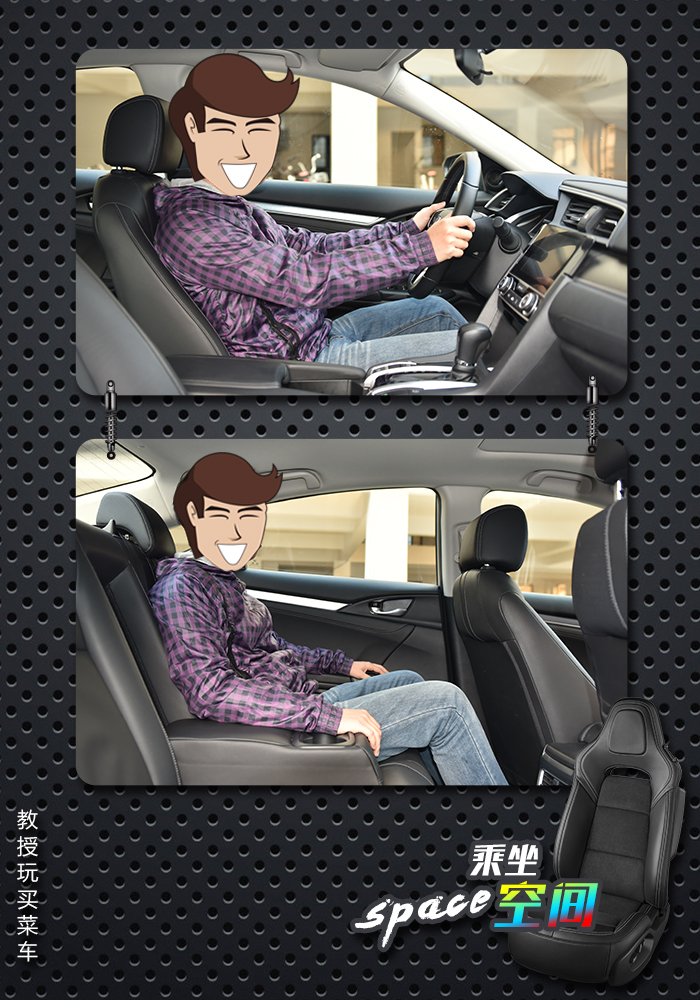 本田技研除了一心地研究发动机变速箱等核心技术之外,对于空间处理,他们有着自己一套MM理念,即将机械部分占用的空间做到最小化,将乘坐和使用的空间做到最大化,所以思域的乘坐空间呢,当我们在前排调整好自己的正常坐姿后,再回头坐一下第二排,腿部空间还是留有约两拳的距离,头部也不会很局促。