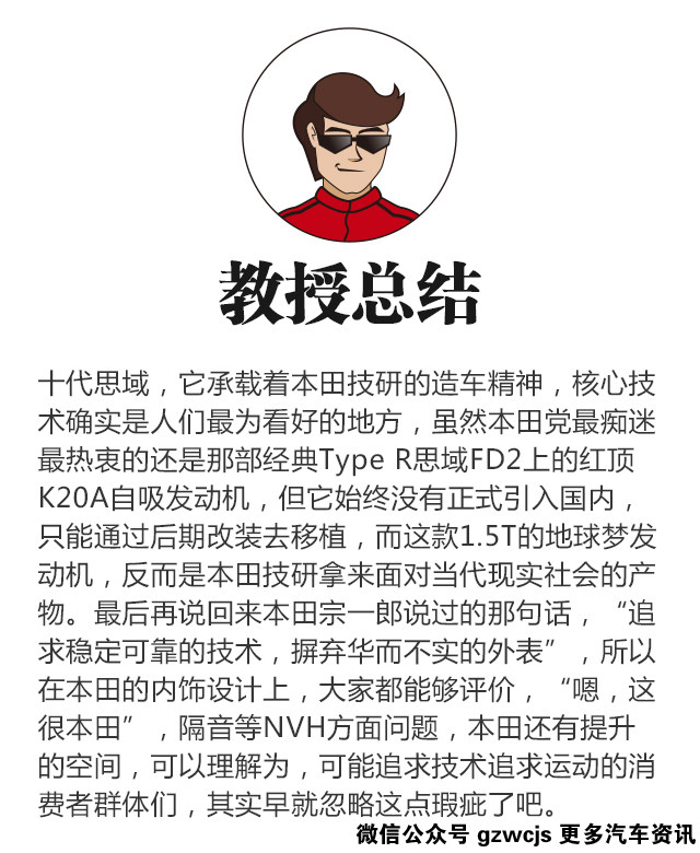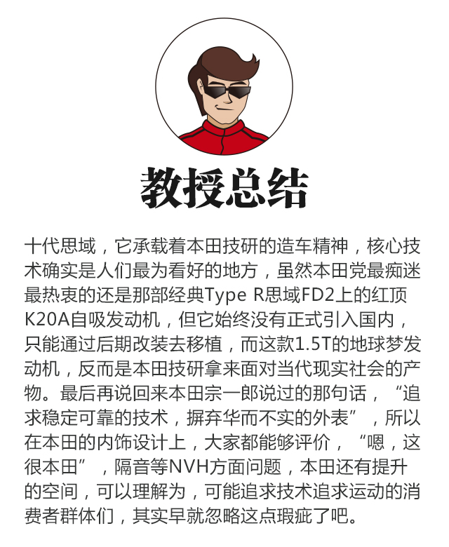 本田宗一郎曾经说过:“追求稳定可靠的技术,摒弃华而不实的外表”,用这句话来描述本田技术狂的身份,一点也不过分,本田在日系中,确实是讲究运动的,即便销量上打败不了丰田,只能沦落为千年老二,但是其对技术近乎极端的偏执,崇尚技术又不受人左右,颇富个性又不为利润妥协的精神,才是它整体的灵魂,且在整体偏舒适调校的日系车里,本田的底盘调校属于偏硬。