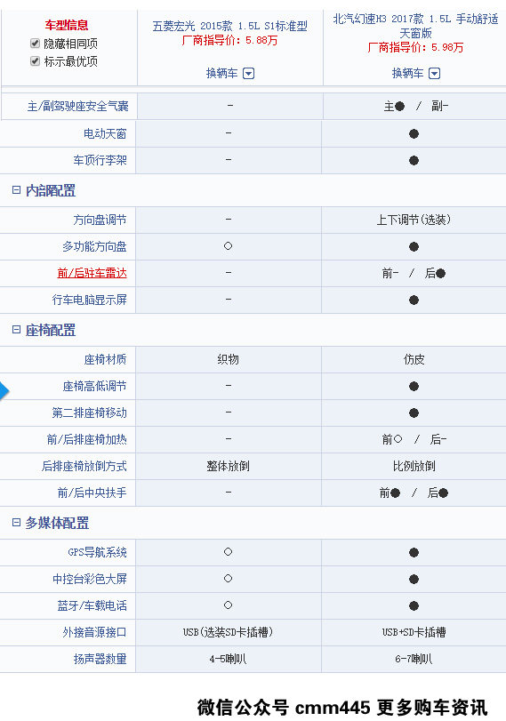 销量大得惊人的宏光是幻速H3的主要竞争对手,而我们可以拿幻速H3新上市的车型简单对比一下同价位的宏光。