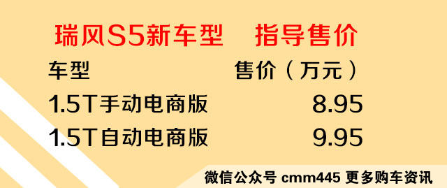 瑞风S5的发动机功率强劲,实际表现也不错。这次推出的电商版让我们又多了一个较好的选择。