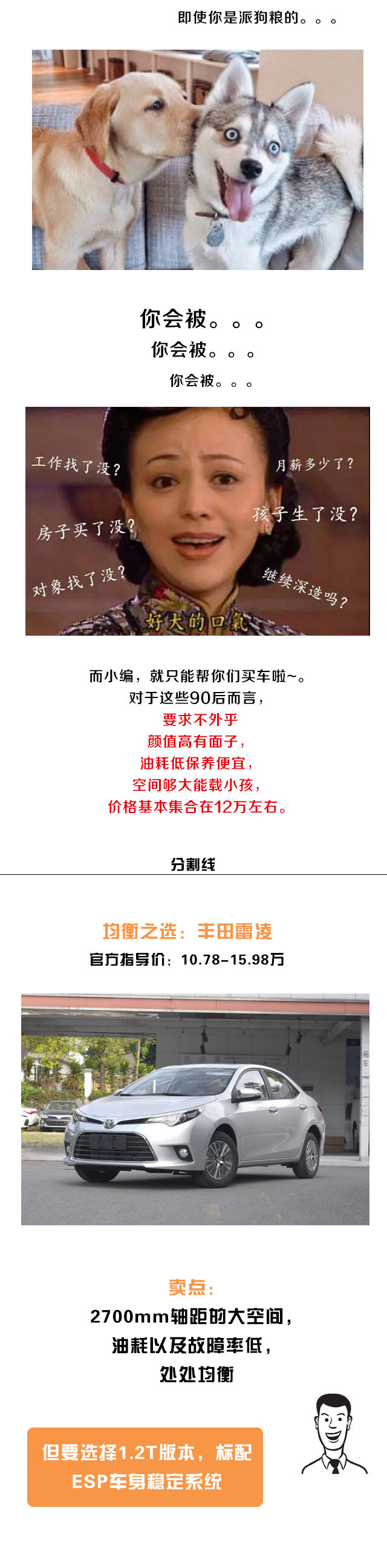 以上车型都是适合年轻人的,即使是使用贷款的方式购买也不会造成太大的压力,关键的一点是这些车型基本可以陪伴你度过初初成家、孩子长大的过程。