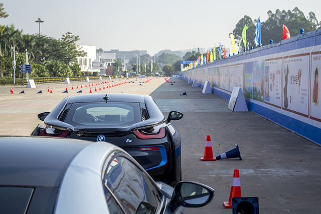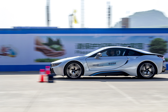 首先体验的是BMW i8和BMW 7系插电式混合动力这两款车,进行的是场地试驾,在短短的一百多米直线中,完成0-100km/h的加速和100-0km/h的紧急制动。