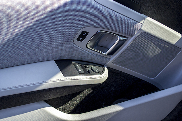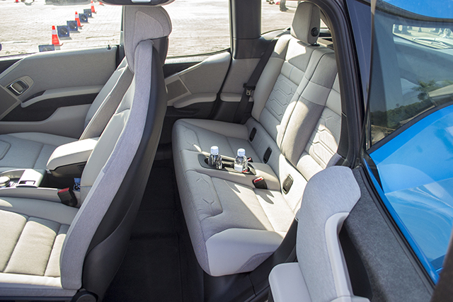 后排座椅的空间表现并不是想象中的那样拥挤,175cm的男子也能够以慵懒的坐姿坐在里面,当你坐在后排座椅,环顾四周,你会发现i3的内饰大量使用了天然纤维与织布材料,整个座舱氛围与普通的汽车有所不同,坐在里面,能够带来一种“未来感”,整个世界都仿佛回归到了从前的空气清新,蓝天白云。