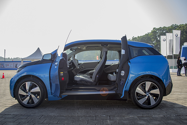 首先是上车方便,由于i3采用了对开门的设计,进入后排的方式与传统车门不太一样,如果是传统的开门方式,正常情况下后门的开启角度都比较小,我们需要从侧后方加入,但是i3的对开式车门,我们是从前方很顺势就能坐进后排,一气呵成。