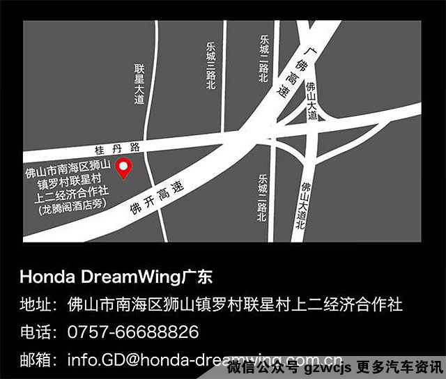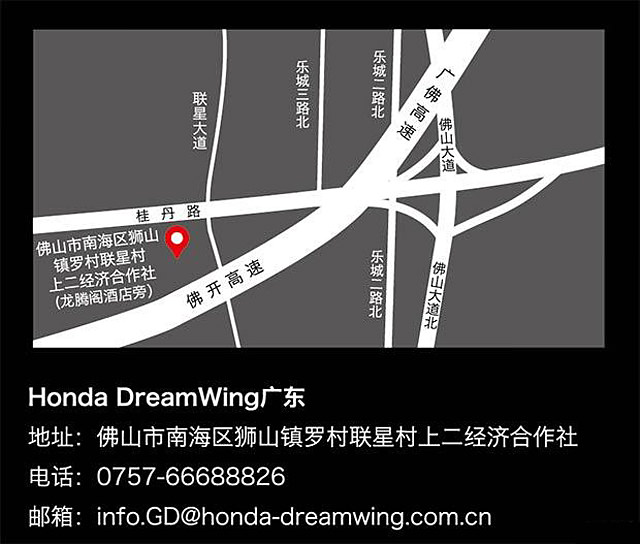Honda DreamWing广东店于2016年12月17日正式开业,店内涉猎产品排量从500cc至1800cc,车型级别包括跨界、跑车、巡航、街车四大序列,产品涉及CB500X 、CBR500R、CB500F、CTX700N、NC750X 、NC750S、CRF1000L Africa Twin、CB1100、VFR1200F、ST1300、CTX1300、GL1800C等12款大排量产品,全面涵盖了日常行驶、长途旅行、郊野探索等各种用车需求。