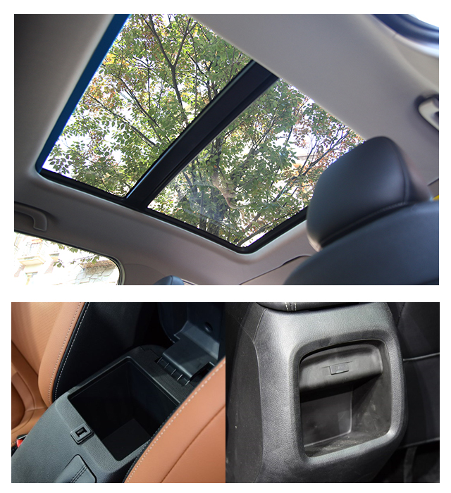 例如它设置了一个较大的中控扶手箱,使得日常的物品都能找到放置的地方。而车门除了用料与设计比较出色之外,也设置了不少的储物空间。后排同样存在亮点,平整的地台使得乘坐舒适性大幅提升,座椅经过4/6比例放倒后可以形成纯平的储物空间,极大的提升了使用便利性。当然时下最流行的全景天窗也没有缺席,可开启的功能也比竞争对手实用性更强。