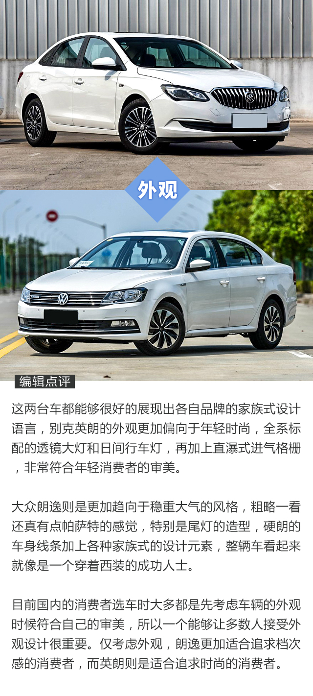 其实要怎么选择这两款车并不难,我们只要认清自己的需求即可,如果你只是平时上下班代步,除此之外都很少开车,同时又对外观内饰设计有较高要求,那么可以选择英朗,多去享受其舒适性配置;如果你是平时开车比较多,特别是跑长途,同时想要一辆设计稳重、大方的车,那么应该选择朗逸,定速巡航还是很好用的,外观内饰设计能够给人带来安全感。