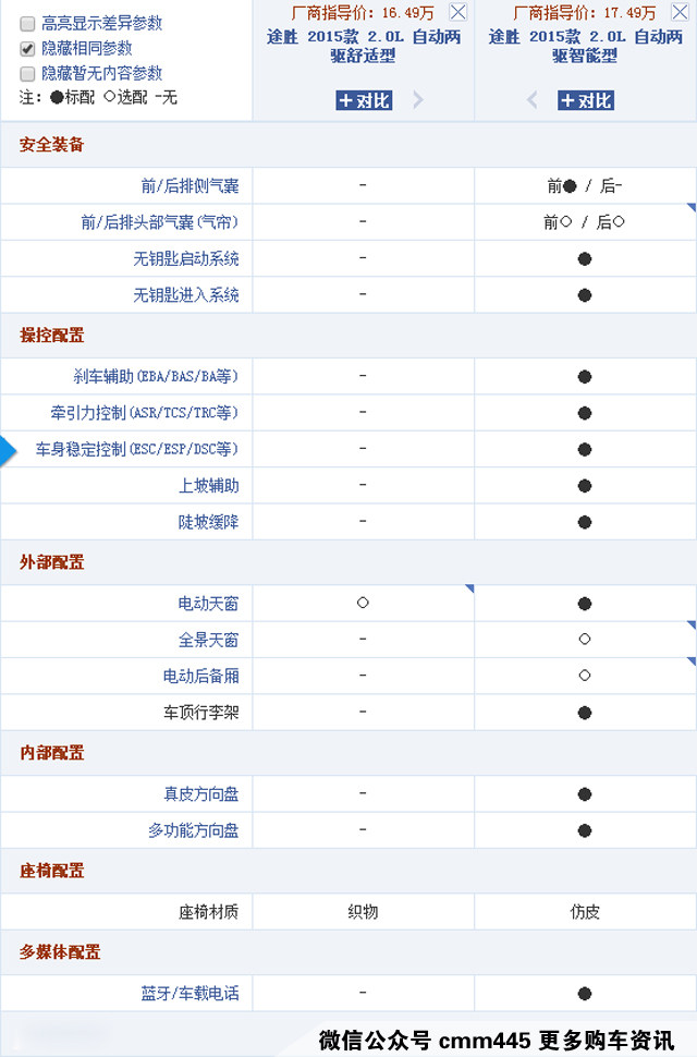 2.0L车型,我会建议买自动挡的顶配,因为它比最低配贵了1万元,但是多出了很多配置,例如后座出风口,以及将16寸轮胎升级为17寸,其余的差异可以看下表。