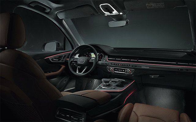 在高科技的配置上,全新奥迪Q7不但拥有并线辅助,车道偏离预警,自动泊车等基本的功能,还拥有主动刹车系统,自适应巡航,全景摄像头系统,夜视系统,能够在黑夜自动识别路上的行人,投影于仪表盘上,汽车搭载这样的黑科技,真让人惊愕万分。