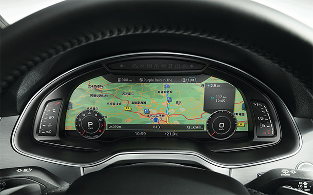 全新奥迪Q7在内饰上最大的亮点,还在于“虚拟驾驶舱”这个系统,它通过仪表盘处12.3英寸的高清显示屏为载体,利用全新的数字化仪表代替了以往的指针式,驾驶员通过多功能方向盘上的按钮选择数字化仪表盘上的不同功能,让全新Q7的人机交互系统达到了顶峰。