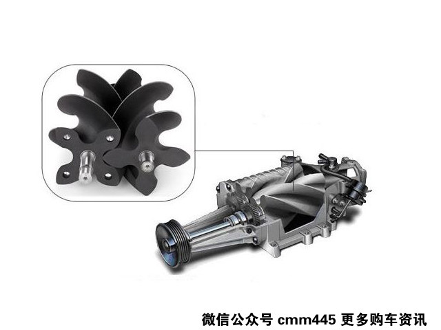 反观机械增压,它不需要废气涡轮,而是通过一个机械增压器来压缩空气,机械增压器由压缩机转子、同步/传动齿轮、动力轮组成;