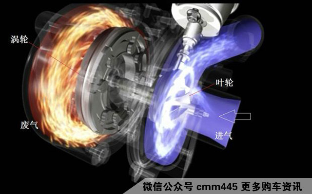 我们先来复习一下常见的涡轮增压原理,我们所接触到的涡轮增压发动机几乎都是以废气涡轮作为发动机助力器的动力总成机构;
