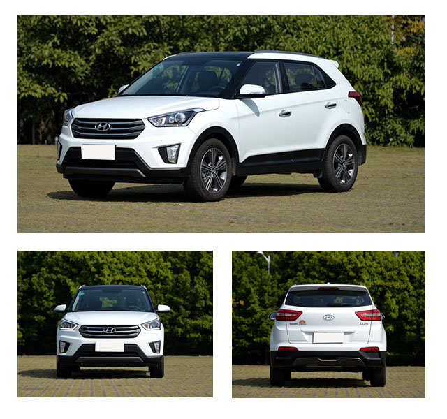 ix25的外观整体感很出色,虽说第一眼不算很惊艳。但采用流体雕塑感念的前脸还是相当耐看的,多边形的进气格栅采用横向镀铬条,质感十足。微微上扬的腰线配合悬浮式车顶造型整体呈现很硬朗阳刚。车尾则设计得比较饱满敦实,却不会太过张扬。
