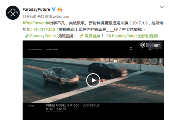 科技进步和追赶的脚步飞速,当很多人还在向Tesla表达敬意的时候,同样来自美国硅谷的智能互联电动车品牌Faraday Future(简称FF)官方微博发布的一则竞速视频,让其再次成为话题焦点。