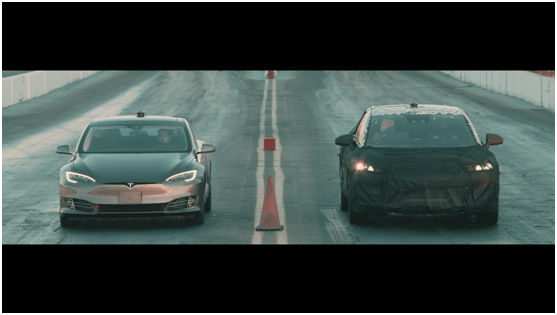 从视频中看,FF首款量产车与Tesla Model S P100D从起步时就非常胶着,并且中段加速能力十分接近,在以微弱优势赢得这场竞速对决后,创造了迄今为止的最快加速记录,“全球百公里加速新王者”或将正式由此诞生。