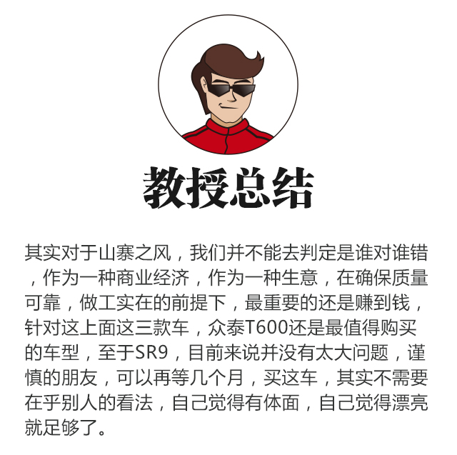 其实很多人都在吐槽众泰,说众泰是一个没有技术的汽车厂商,外观靠皮尺部工程师,发动机靠国产的老三菱发动机,靠着“山寨”的噱头去借势营销,还希望老百姓们去买账,其中车辆的质量安全是否可靠,非常值得人们的怀疑,这一期,教授将调一下这三款车,简单来说一说,其实众泰汽车,除了山寨的噱头,究竟值不值得买?