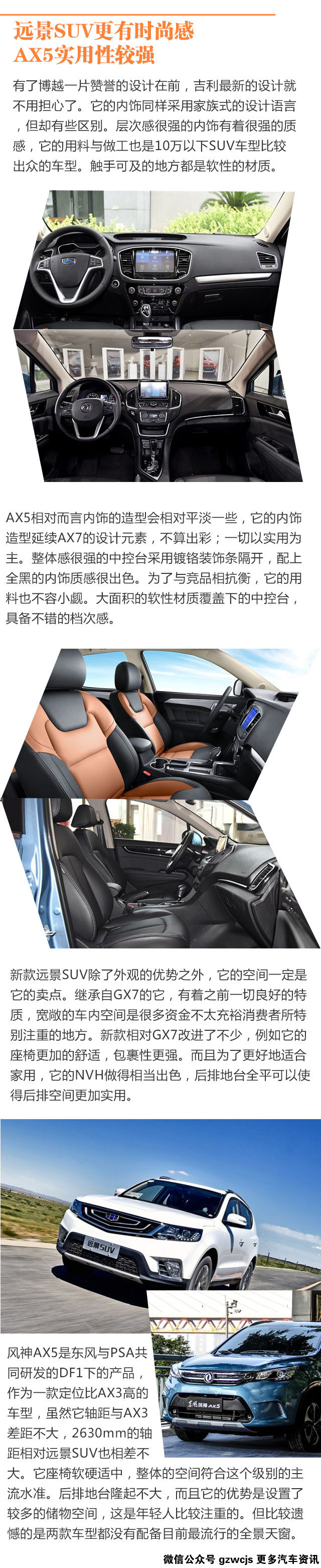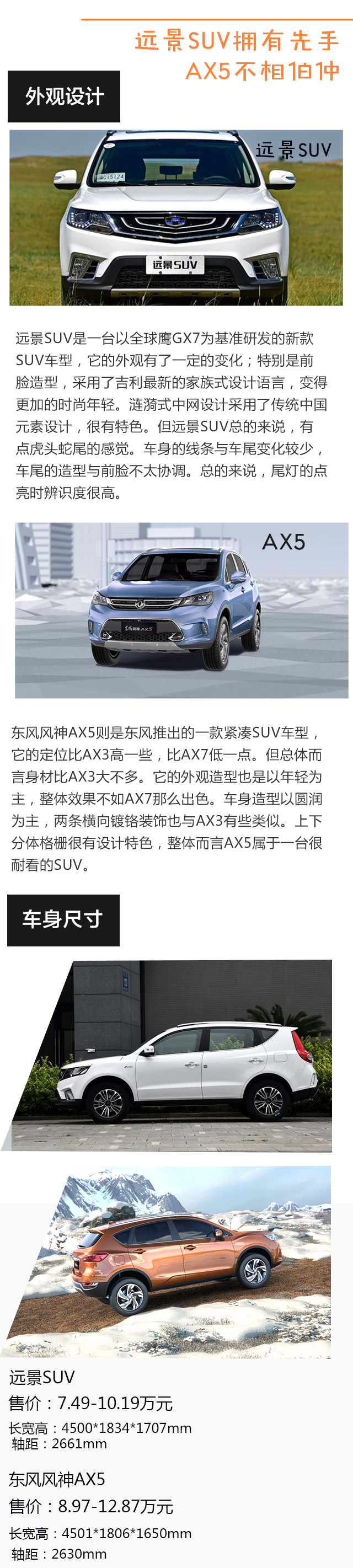 目前SUV市场非常红火,但对于国内的消费者来说;他们很多时候对SUV的购车预算大多数会考虑在10万以下的车型,而这个区间最火热的要属最火热的远景SUV了。远景SUV作为一款上市多年的车型,凭借着良好的口碑与超高的性价比在三四线城市当中一直都受到追捧。其他品牌看它这么红火,肯定心有不甘;酝酿着推出竞品与其竞争。在这个背景下,东风风神AX5应该是与它最接近的一款车型了。