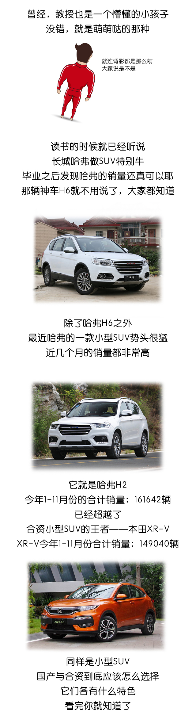 哈弗H2在销量上超越XR-V,教授并不会觉得惊讶,因为两者本来就不是同一定位,也不是同一级别的对手,哈弗H2的低售价高配置为它吸引了很多消费者的目光,XR-V则是靠它那些精致的设计、用料、做工和行车质感去获得消费者的关注,两车侧重点不同,最终要怎么选择,其实很简单。