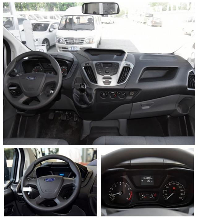 新全顺的内饰设计采用了福特最新家族的设计语言,非对称式的中控设计,外加黑色内饰加银色镀铬配色,整体显得更有档次感,中控面板和门把手对于细节的处理也非常细致,非常符合新全顺的车型定位。