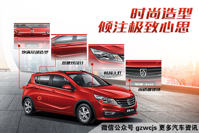 从设计上,宝骏310以运动感作为了整车的主基调。三辐条的镀铬格栅配合熏黑的下包围,颇具视觉的冲击力。侧面采用了运动感十足的上扬式双腰线设计,尤其下部的腰线,采用冲压工艺要求更高的弓形形状,使得整体的灵动感大大提升。甚至连C柱,也采用了部分熏黑的设计,使其与后玻璃更好地融合,进一步凸显出车身的跃动姿态。从设计水准来看,宝骏310足以与POLO、爱唯欧等同级别车型拉开明显的差距,这也极为符合时下年轻消费者对于运动、年轻、个性化的独特理解。