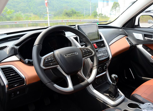 这台定位于小型SUV的比速T3,外观透露出一股浓厚的时尚气息,形象应该会比较招年轻人的喜欢。内饰风格还是在围绕着时尚感作文章,双色拼接的内饰,视觉上很容易对此产生好感,同时仿皮革饰板和金属拉丝饰板的搭配,也在视觉上极力地努力营造档次感。