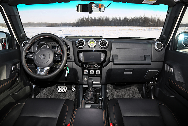 看完BJ40L后,再看看这款名副其实的“大盒子车”BJ80,远远看过去酷似奔驰大G,但近看从前脸望过去,还是“长城”状的五孔家族脸谱,运用许多直线和棱角造型,有着浓郁的刚劲,硬派越野范儿,内饰乘坐非常宽大,视野非常好,其中与BJ40L不同的是,BJ40L采用的是手动控制分时四驱,而BJ80则是采用电控分时四驱,更加容易操控。