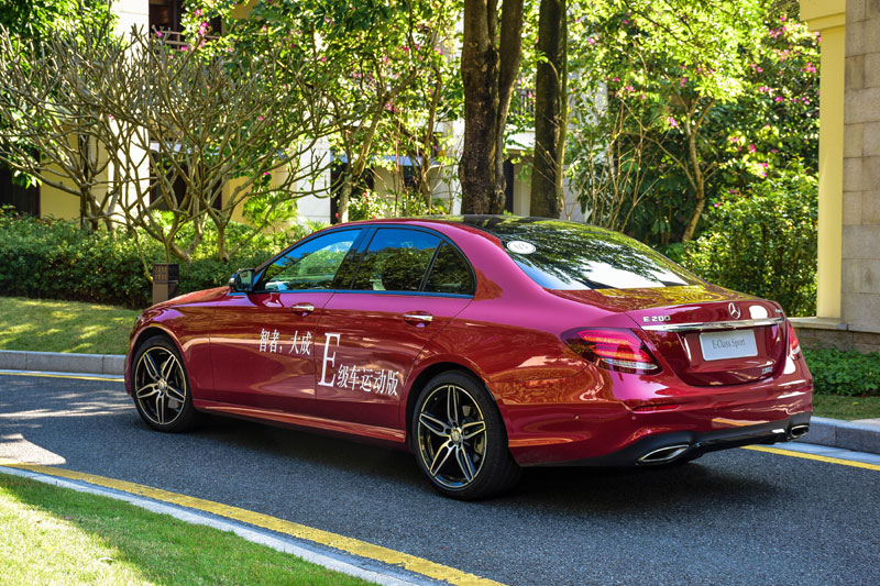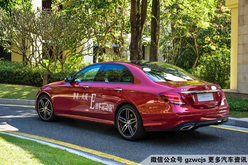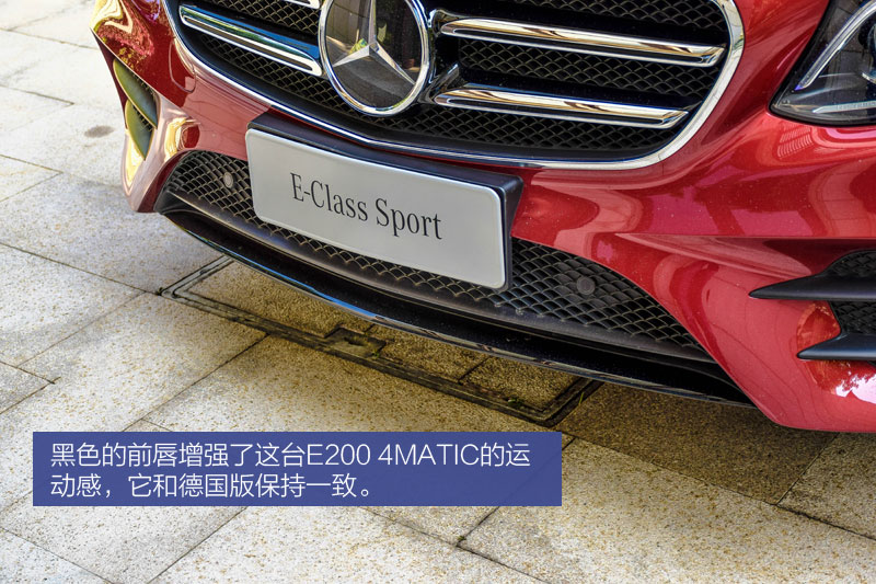标轴E200 4MATIC在中国的官方型号为E200 运动型 4MATIC(本文内以标准轴距E200或标轴E200称呼),它的外观,和德国版E级保持一致,相比起长轴距E200L,它更接近奔驰C200的造型,只是更大气了。
