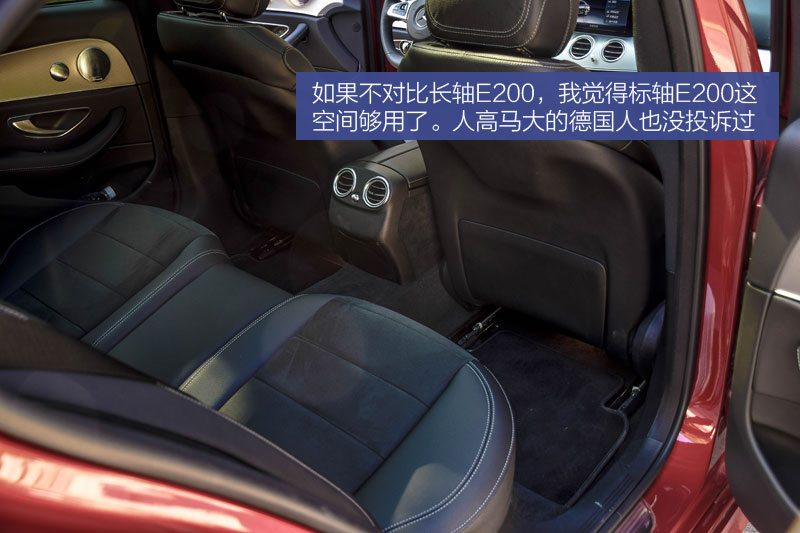 对于喜欢标轴E200的消费者来说,建议大家带媳妇去看车的时候,就绕过长轴版E200L,直接看标轴,只要不对比,相信我,标轴E200空间够了!不信看下图