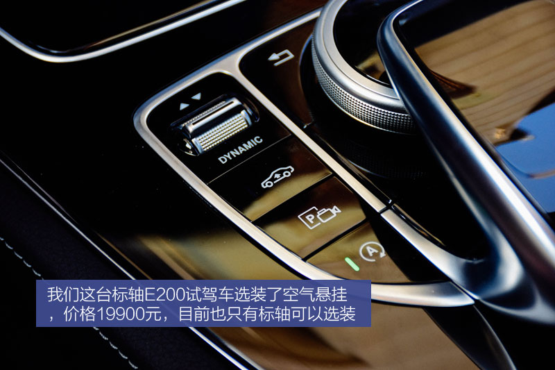 我们试驾的这台标轴E200选装了空气悬挂,我查询了一下,加装价格为19900元,目前来看,只有标轴E级可以选装空气悬挂,加长轴距E级是无法加装空气悬挂的,这一点来看,标轴E级的逼格还是很高的。