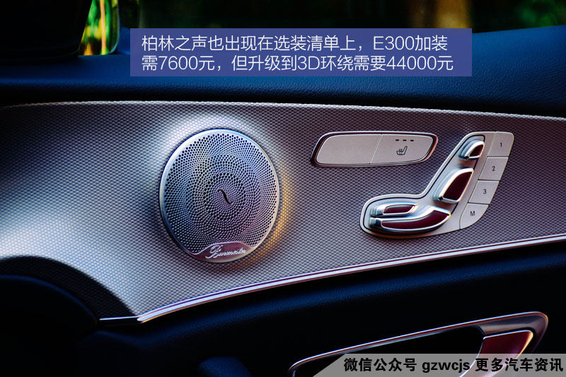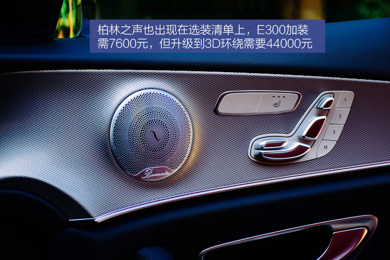 不过,我也特意去了奔驰展厅听了乞丐版标轴E200的原车音响,竟然表现还可以,明显比奔驰C级和CLA要更好!但我仍然强烈建议你去选装柏林之声(土豪选44000套餐,普通人选7600元套餐即可),音效改善很大!