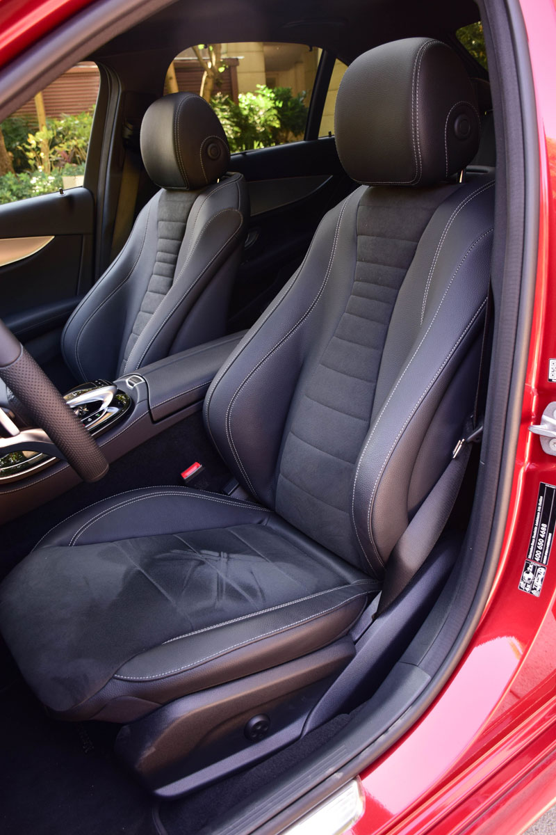 座椅中间部分采用了Alcantara材质(用于增强摩擦力),两侧的护翼显示出不错的包裹性,一眼看上去就觉得很运动!