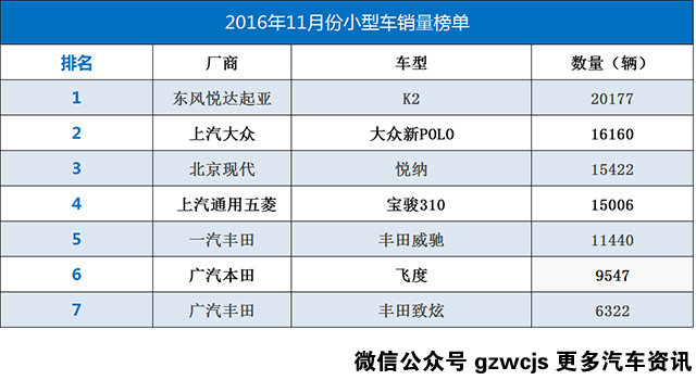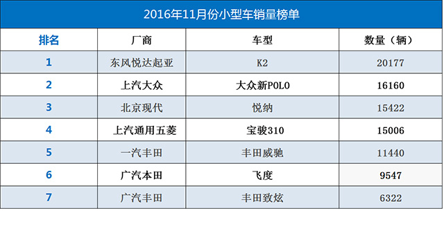 虽然这样的话,很悲观。但小型车真的没有市场了么?拿11月的小型车销量来看,第一名的K2一个月2万多的销量确实不算太差。就整体的市场容量来说只有5款车型能踏进1万销量大关,相比目前火热的SUV市场与紧凑车来说真的可以说是小巫见大巫。