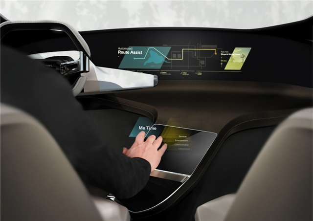 未来的车辆内,驾驶者和乘客可以各自享受音乐而不互相干扰。首次展出的音效装置BMW Sound Curtain通过座椅头枕发射出不同的声音信号,为座位上的用户提供个性化的专属娱乐信息。一个可折叠的大尺寸屏幕可从车内顶篷延伸出来,进一步丰富后排乘客的车内互联生活。
