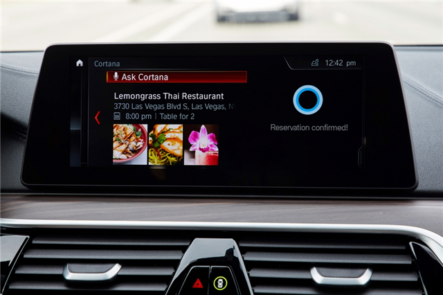 在开放式移动云的支持下,BMW 云端互联可以整合丰富的应用,让人们在车内便捷地处理各种事务。比如已经在家用电脑上推出的个人数字助理“微软小娜(Cortana)”也可以在BMW汽车上使用。在驾驶过程中,用户可以通过语音控制让小娜推荐就餐地点并预定位置。