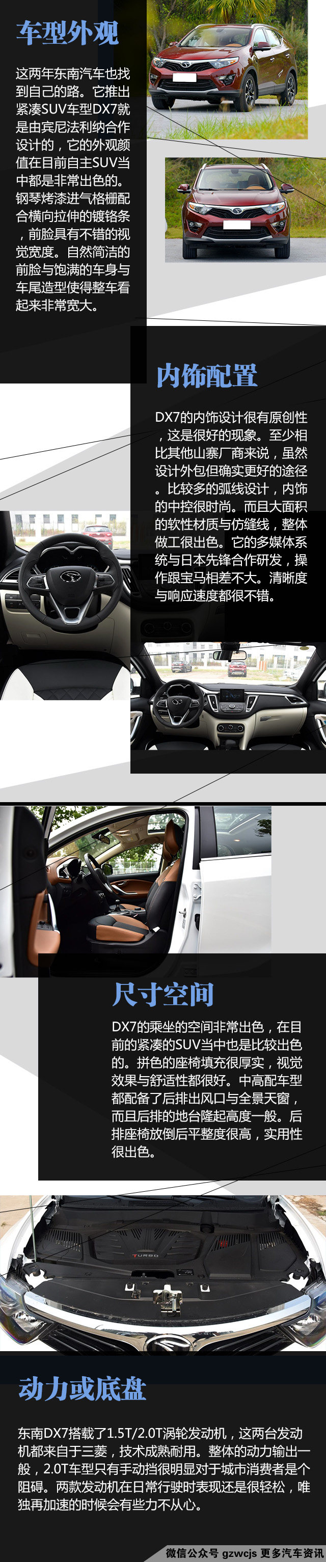 教授总结:一款SUV要想热卖肯定有着自己的优势之处。传祺GS4凭借着较好的颜值与出色的操控应该是自主SUV少有的,虽然它的配置不算很出色。但最新换装了6AT把之前顿挫的短板也补全了,相信会有更好的市场表现。东南DX7则是凭着出色的颜值与宽敞的空间在竞争激烈的自主SUV当中站稳脚跟的,虽然它的动力老旧,但带来的是耐用性。