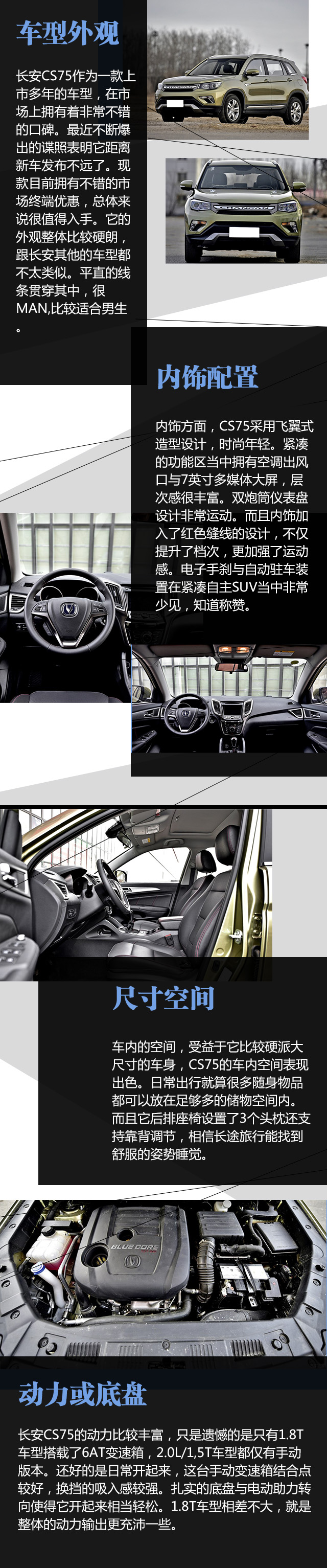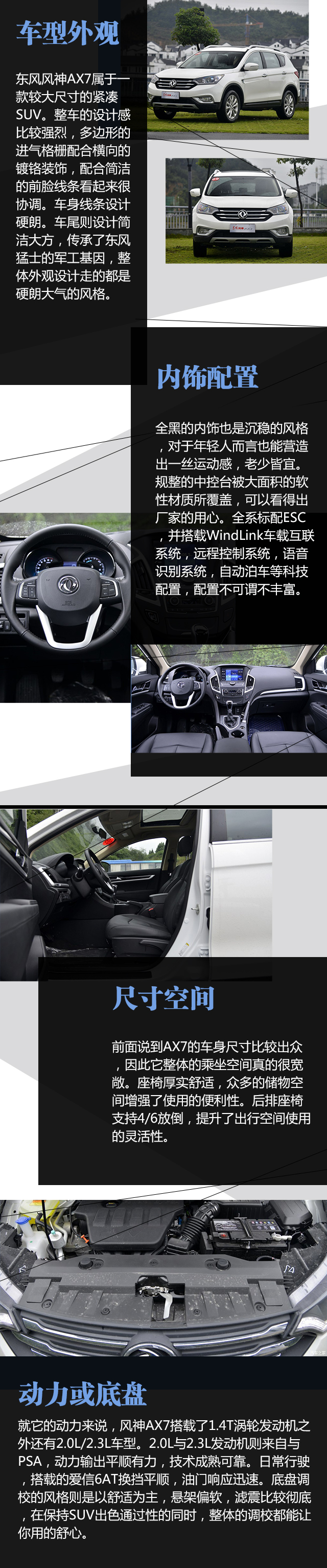 东风风神AX7最大的优势就是它壮硕的尺寸,而且它丰富的配置与相对较好的性价比都使得它具备良好的竞争力。它成熟的动力总成使得它后期保养更加放心,虽然很多网友反映它发动机噪音在高速时有些偏高,这些相信日后厂商会慢慢完善的。最后CS75虽然已经临近改款了,但它已经受了市场的考验,硬朗的外观造型与非常高的性价比使得它目前非常值得购买。而且长安作为军工企业,质量与口碑还是不错的。
