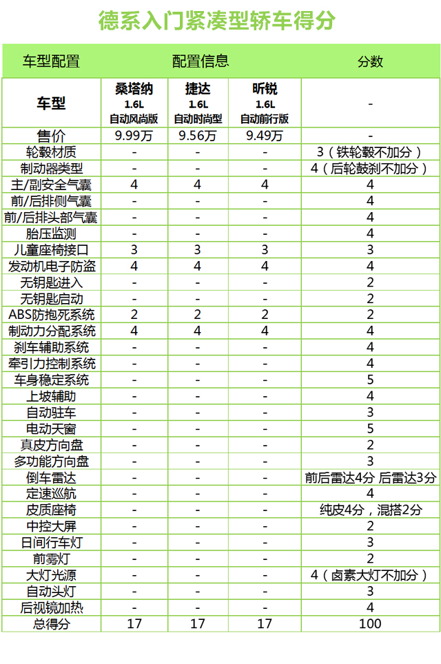 以入门级德系车型为例,实际上配置水平均处在中等偏下的水平,而且今天所体到的三款入门级别的车型在配置水平基本是一样的,入门版车型一切均以实用为主。不过相信选择这类车型的消费者更看重汽车本身的质量,车身电子设备越多、故障率就有可能会越高,当车身配置简化到一定程度时,能出现故障的地方也不会多了。