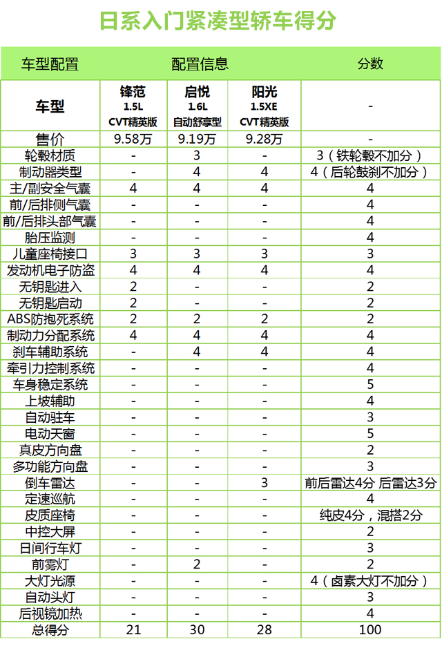 以10万内入门紧凑型轿车的定位来看,日系车型并不多。今天拿了三款关注度比较高的车型,在对比之下你会发现,10万以内的合资紧凑型车型配置并不会高,而这三款车中较为偏门的铃木启悦在配置方面性价比更高。不过值得一说的是,这三台车在终端都有一个很不错的优惠,10万左右的购车预算大部分地区都能买到中配版本的车型。