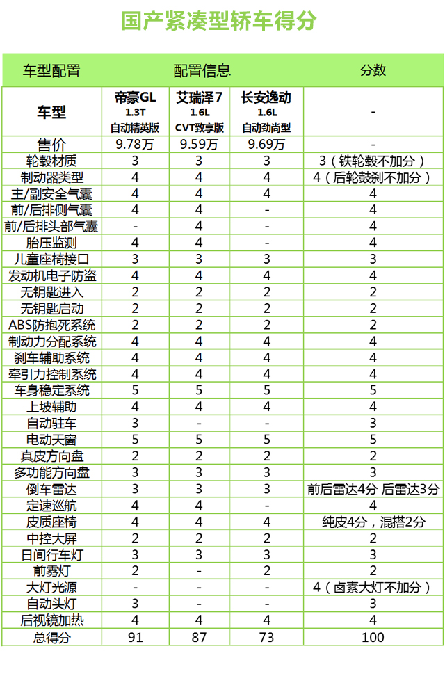 就以上这6款国产车型来说,最突出的两位选手就是奇瑞的艾瑞泽7以及吉利的帝豪GL。不过教授在这儿更推荐帝豪GL,虽然艾瑞泽7的配置是这几款中最高的,但是它的销量并不高,甚至已经是一款被消费者所遗忘的车型,而帝豪GL恰恰相反,而且它也是具备冲击榜单前十位的实力选手之一。