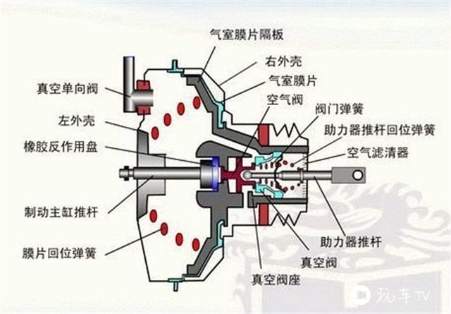 它是利用发动机工作时吸入空气这一原理,造成助力器的一侧真空,相对于另一侧正常空气压力的压力差,利用这压力差来加强制动推力。 (但是由于后来的缸内直喷发动机越来越多,而且厂商开始逐渐在混合动力车和纯电动车领域发力,很多车就会配备电动助力泵。)