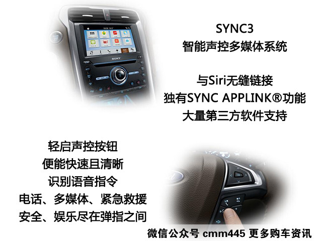2017款新蒙迪欧所使用的SYNC3智能声控多媒体系统,可以非常便利地让驾驶者解放双手而在驾车过程中延续社交的习惯,与Siri无缝链接,让语音指令得以迅速的响应,高精度的电容屏幕可以精确地识别连写字体,让输入不再成为车载多媒体的弊端。