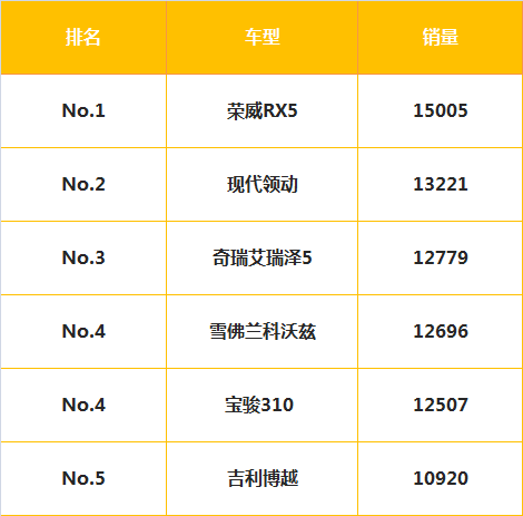 噔噔噔噔!这个成绩是否跟大家预测有出入呢?从表格上可以看到,SUV新车的受欢迎程度比轿车要高,上榜的国产品牌比合资要多,看来大家对新车的喜好正符合教授的预测——国产SUV崛起。