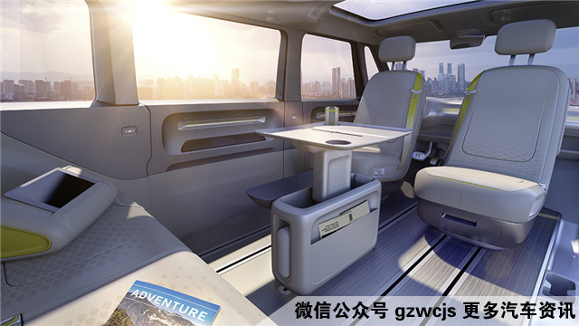 基于MEB-XL扩展平台,I.D. BUZZ长4942mm,宽1976mm,高1963mm,而轴距达到了3300m,空间表现非常出众,最多可容纳8人乘坐。所以,I.D. BUZZ的内饰将汽车与休息室氛围融合,灵活的座椅设计同样体现了这一点。